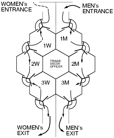 The walls of the hexagonal triage/observation room are made
